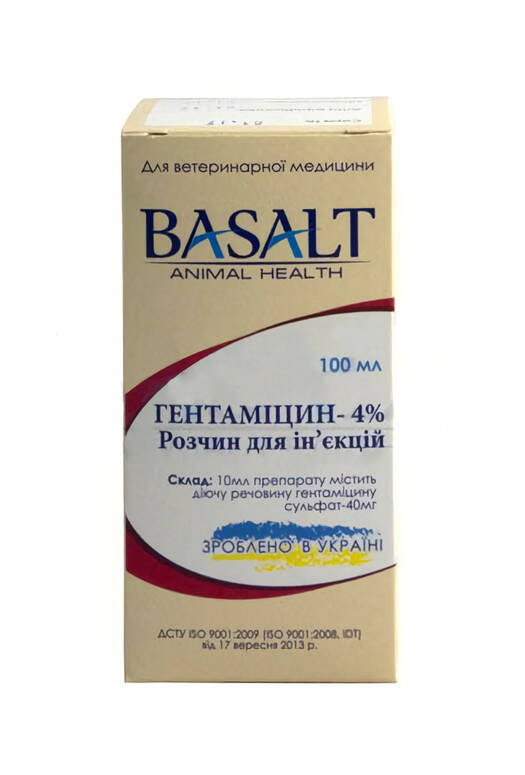 Гентаміцин 4% розчин для ін'єкцій 100 мл Базальт