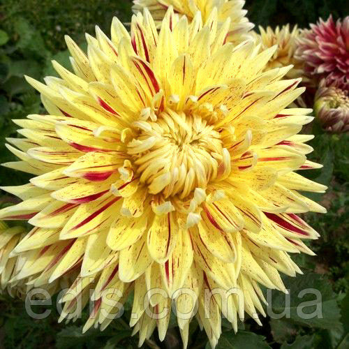 Яскрава сонячна жоржина декоративна Cambridge покрита витонченим бордовим крапом. Даний сорт має витончений забарвлення і аромату, завдяки чому вона отримала широке поширення в Україні серед садівників і флористів.