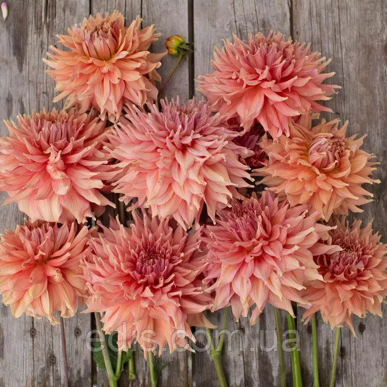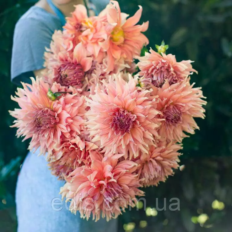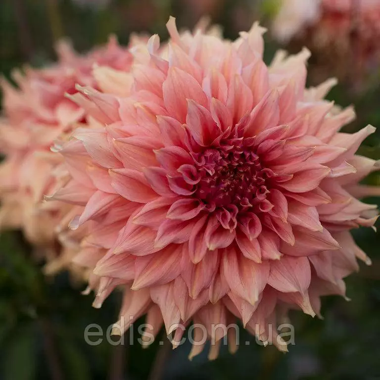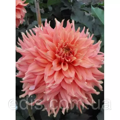 Декоративна георгіна Fairway Spur (Фервей Спур) з гігантським махровим квіткою коралово-абрикосово-рожевих відтінків. Чудова новинка в нашій колекції. Один із найкращих великобарвкових сортів гергіни, який ми бачили.