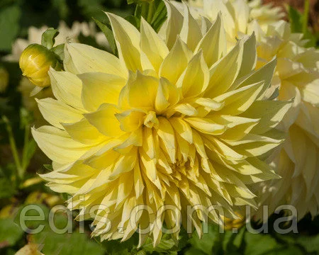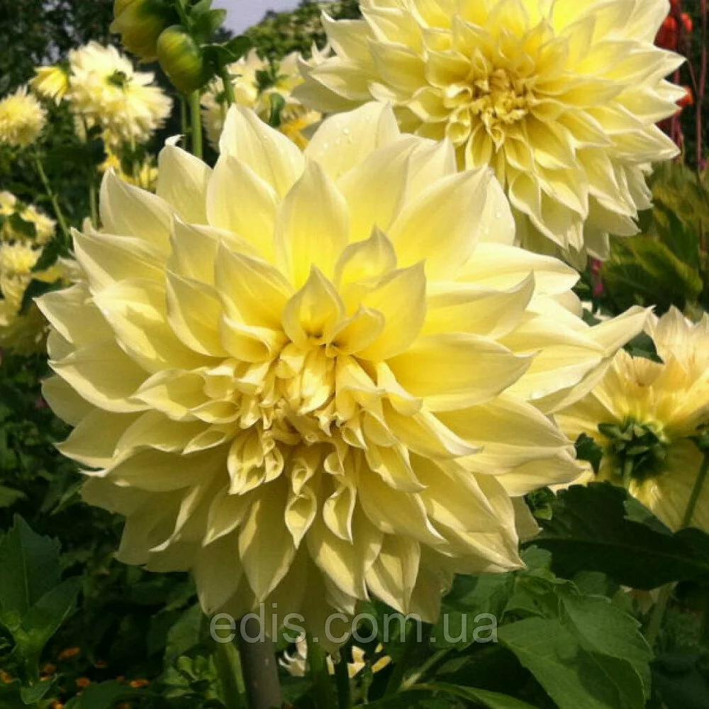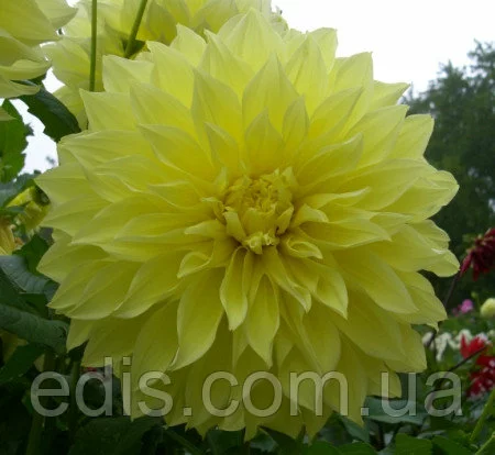 Солнечная георгина Kelvin Floodlight любима садоводами по всей Украине. Ее огромные желтые соцветия вырастают до 30 см в диаметре, благодаря чему она получила название георгина-гигант. Этот сорт незаменим и для составления букетов.