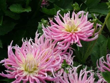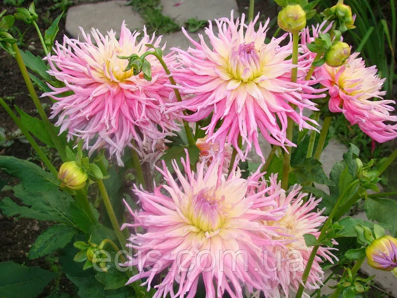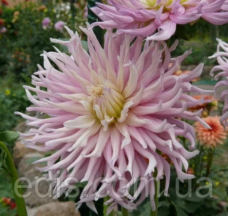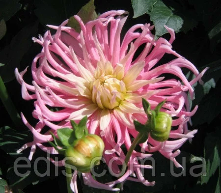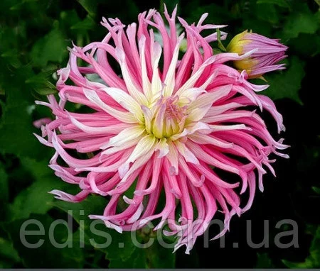 Жоржина "Star's Favourite Група кактусові Квітка - 15-20 див. рожевий з кремово-жовтим центром. Висота - 100 див. Кактусові жоржини (Cactus Dahlia) - свою назву отримали завдяки оригінальній формі суцвіть. Останнім часом у групі кактусових жоржин стає все більше сортів з глибоко розсіченими кінчиками пелюсток, з-за чого суцвіття здаються ніби скуйовдженим чиєюсь рукою. Суцвіття у кактусових жоржин досить великі —15—18 см, повністю махрові, що складаються з вузьких згорнутих на більшій частині довжини пелюсток (язичкових кольорів), що розходяться у всі напрямки від центру квітки. Цвітіння рясне з липня до заморозків.