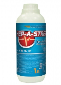 Геп-А-Стрес Опис Прозора масляниста рідина від безбарвного до жовтуватого кольору, можлива поява незначного осаду. Склад 1 мл препарату містить: карнітину гідрохлорид - 25 мг; D,L - метионін - 10 мг; сорбітол - 200 мг; холін хлорид - 18,75 мг; магнію сульфат гептагідрат - 10 мг; бензиловий спирт - 15 мг; воду дистильовану - до 1мл. Фармакологічні властивості Дія препарату зумовлена фармакологічними особливостями його складових. Карнітину гідрохлорид збільшує м'язеву масу і покращує функції серця, стимулюючи метаболічні процеси і підвищуючи витривалість організму.Зменшує ризик виникнення жирової дистрофії печінки. Поліпшує проникнення в клітини вітамінів та мінералів - антиоксидантна дія. Метионін і холін хлорид сприяє синтезу ферментів печінки, що важливо при детоксикації, сприяють зниженню холестерину в крові завдяки ліпотропній дії. Сорбітол та магнія сульфат регулюють кишковий транзит і посилюють відтік жовчі. Застосування Застосовують препарат для нормалізації обміну речовин, підвищення загальної резистентності та продуктивності, профілактики та лікування жирової дистрофії печінки, у стресовий період, прискорення росту при відгодівлі. Дозування Препарат застосовують перорально, як добавку до щоденного раціону у розрахунку: Велика рогата худоба, свині, птиця: 1 мл на 1 літр питної води або 1мл на 10 кг живої ваги. Застосовувати протягом 5 діб. Протипоказання Не застосовувати з антибіотиками тетрациклінової групи. Не рекомендується змішувати разом з вакцинами, які випоюють з питною водою, бо можлива взаємодія вакцини з іонами магнію. Застереження Не застосовувати більш ніж 21 день. Немає застережень на забій. Форма випуску Скляні ампули або флакони по 1; 2; 5; 10; 20; 100мл; 1 і 5 л. Зберігання Сухе темне місце при температурі від + 5°С до + 25°С. Термін придатності - 2 роки з дати виготовлення.