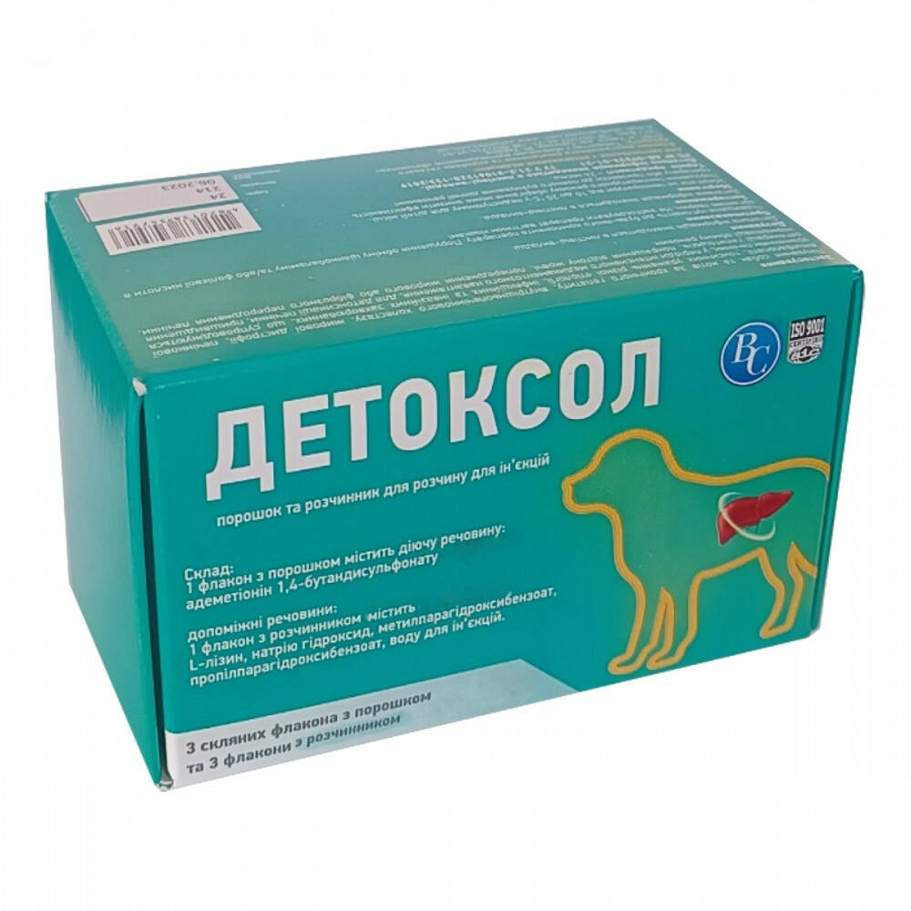 Собаки: Доза становить 15-25 мг діючої речовини на 1 кг маси тіла тварини. 1 флакон із порошком, що містить адеметіоніну 1,4-бутандісульфонату – 4,0 г розрахований на 200 кг ваги тварин. 1 флакон з порошком, що містить адеметіоніну 1,4-бутандісульфонату – 380 мг, розрахований на тварину вагою близько 20 кг. Препарат вводиться один раз на добу, переважно з ранку.