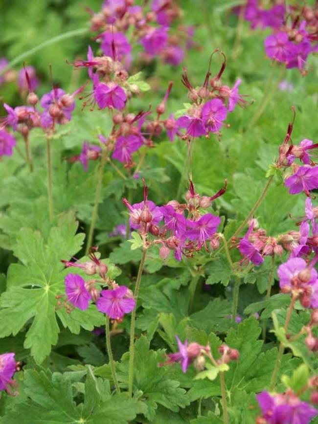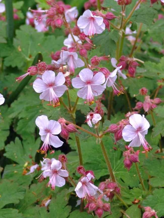 Квітки правильні, двостатеві, п'ятипелюсткові, рожево-фіолетові, криваво-червоні або блідо-рожеві, одиничні, на довгих квітконіжках. Цвіте у червні—липні.