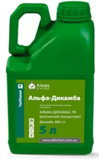 Гербицид  Альфа-Дикамба от  производителя АльфаХимгрупп с действующим веществом Дикамбы диметиламинная соль, 480 г / л + фенмедифам, 91 г/л + етофумезат, 112 г/л  для пшеницы, кукурузы, ячменя, жита, овса  можете купить, заказав на нашем сайте по выгодной цене с доставкой в любую точку Украины.