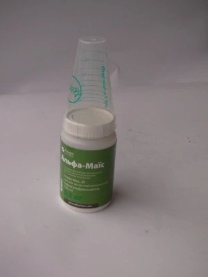 Альфа-маїс 10 г/га + Альфа-Ефір, 0,4-0,5 л/га + Альфалип, 0,1 л /