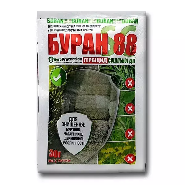 Гербіцид Буран 88SG 30 г AgroProtection — високоефективний гербіцид суцільної дії у формі водорозчинних гранул