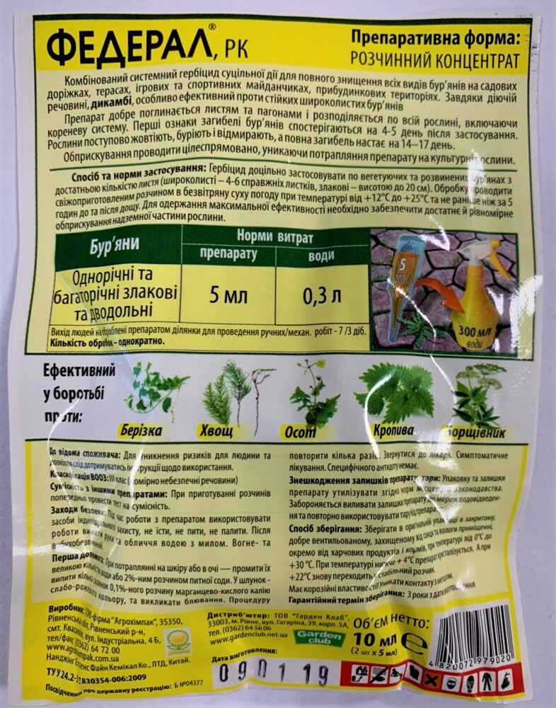 Гербіцид Федерал/Протибур'ян, 2*5 мл — суцільної дії для повного знищення бур'янів