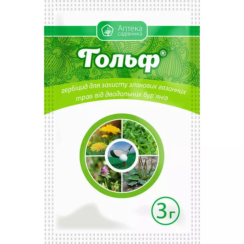 Гольф-cелективний післясходовий гербіцид системної дії для знищення найбільш поширених та важковикорінювальних однорічних та багаторічних видів бур’янів у посівах злакових газонних трав.