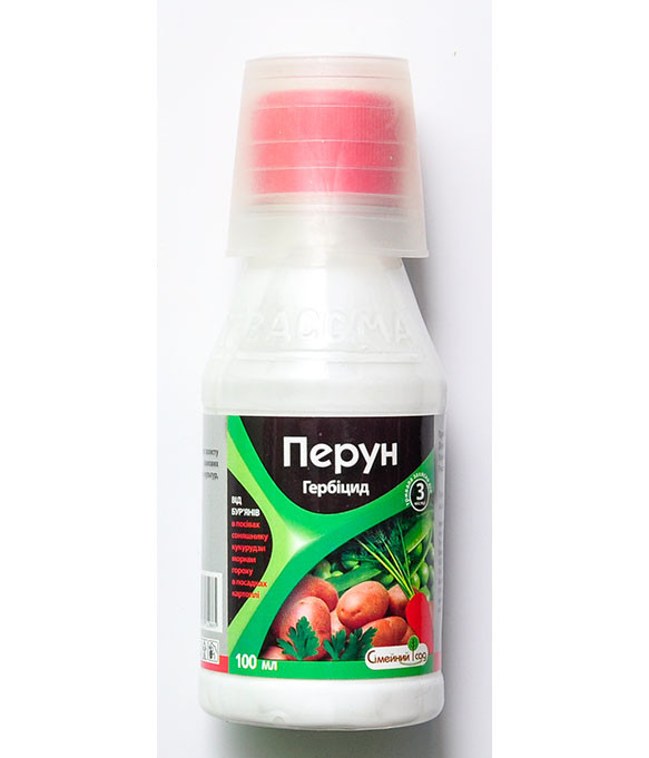 Перун — селективний грунтовий гербіцид для захисту городніх культур (картоплі, кукурудзи, моркви, соняшнику, гороху, сої) від однорічних дводольних та злакових бур'янів. Активна речовина — прометрин. Препарат блокує процеси фотосинтезу і через 5-7 днів бур'янисті рослина гине. Найбільш ефективно гербіцид діє в момент проростання бур'янів. Не чинить негативного впливу на наступні культури в сівозміні. Діє вибірково — лише на бур'яни. Зберігає посіви чистими протягом 10-12 тижнів.