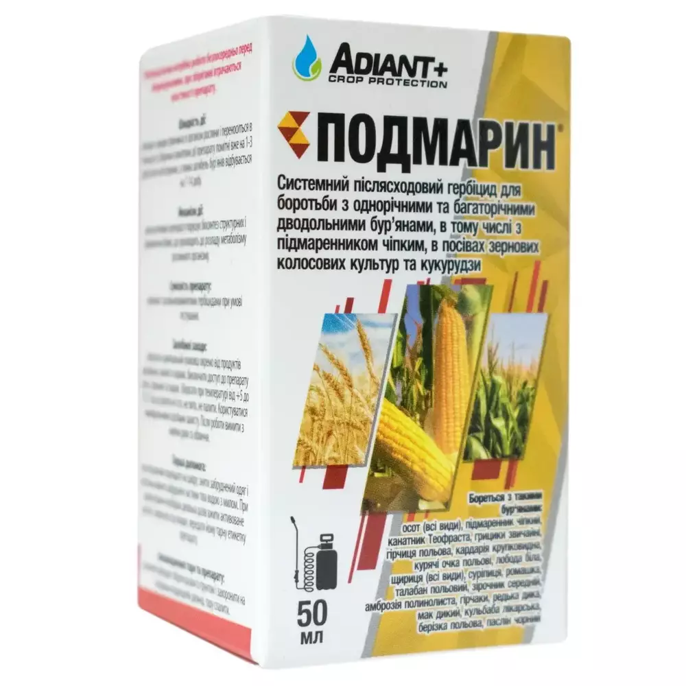 Гербіцид Підмарин — аналог відомого гербіциду Прима. Є системним подальшим засобом, що ефективно знищує всі види дводольних бур'янів, включно з підмартям чіпким. Застосовується для оброблення ділянок під посіви зернових колосових культур і кукурудзяних насаджень.