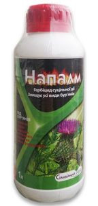 Напалм — це системний гербіцид загальної дії для знищення однорічних і багаторічних бур'янів під час вирощування овочевих культур. Швидко переноситься судинною системою за всіма органами, зокрема й до кореневої системи. Рослини гинуть через 5-10 днів, залежно від погодних умов і різновиду бур'янів. Перші ознаки гербіцидного ефекту з'являються не раніше, ніж через 3-4 дні, спочатку це пожовтіння, потім починається побуріння і в'янення листя.