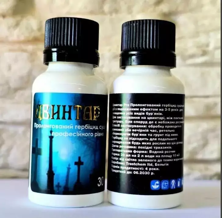 Одного паковання Цвінтар досить для знищення рослинності на 10 м кв. Оброблені рослини не чіпати упродовж місяця.