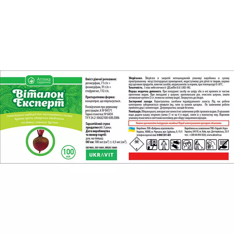 Віталон Експерт - трикомпонентний післясходовий системний гербіцид для боротьби з однорічними дводольними та деякими злаковими бур’янами на посівах цукрових буряків.