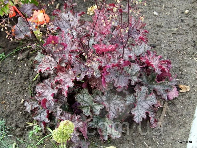 Гейхера Can Can Гейхери - це взагалі рослини, які рідко зустрічаються з садах пострадянського простору. Грамотно пользоваться разнообразием красок этих абсолютно неприхотливых и красивейших декоративнолиственных растений удаётся даже немногим ландшафтным дизайнерам.Скорее всего, секрет его популярности в очень насыщенном красно-пурпурном цвете, особенно яркая нижняя сторона листьев. С лицевой стороны насыщенность цвета и оттенки могут несколько раз за сезон смениться. Цвет также будет разным в зависимости от освещённости места посадки.Нарастают со средним темпом, максимального размера и цвета достигают на 3-4-й год. Все тёмнолистые гейхеры предпочитают тенистые места, умеренно влажный, питательный грунт. Для придания яркого цвета тенистому саду, для украшения приствольных кругов деревьев сочетайте пурпурные, красные и салатовые сорта гейхер. Также гейхеры прекрасно смотрятся с другими теневыносливыми растениями - садовыми геранями, аквилегиями (водосборами), среднерослыми и низкорослыми , , барвинками, дицентрами.
