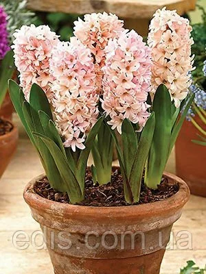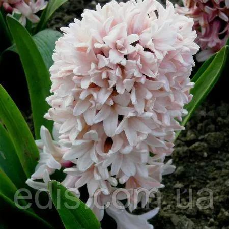 Гіацинт садовий Apricot Passion Дуже ніжний пастельний персиково-рожевий гіацинт Епрікот Пешн має щільне суцвіття з 25-35 квіток. Висота суцвіття до 20 см., висота рослини – до 35 см.