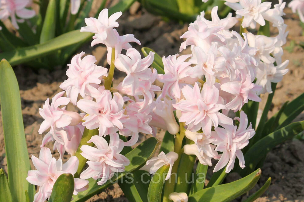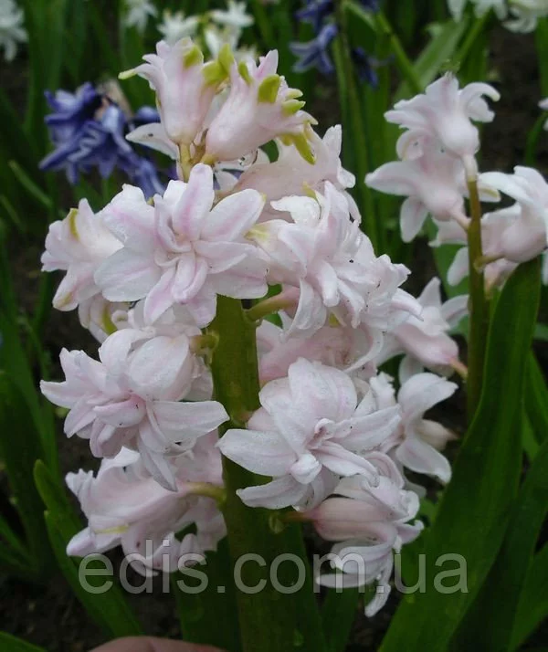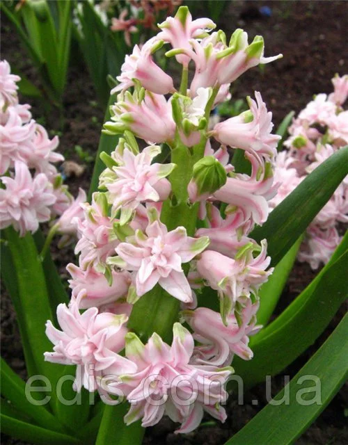 Гіацинт махровий Chestnut Flower Один з рідкісних сортів гіацинтів. Суцвіття щільне до 35 см. у висоту складається з безлічі ніжно-рожевих махрових квіток. При вирощуванні в горщиках махрові гіацинти виглядають шикарно навіть з цибулин 12/13 - 14/15 калібру саме завдяки повним квіткам. Махрові гіацинти відрізняються від простих тим, що кожний окремий квіточка в суцвітті - окремий шедевр. Посадковий матеріал махрових сортів коштує набагато дорожче звичайних, тому їх дуже рідко продають квітучими.