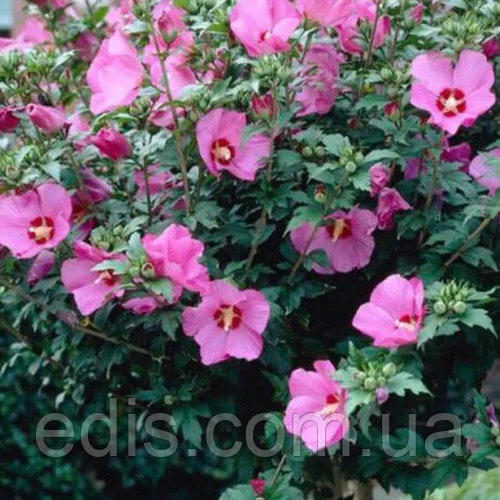 Листопадний чагарник. Висота і діаметр крони може досягати 3 м. Квітки великі, 6-10 см в діаметрі, дуже схожі на квітки мальви – вони шовковисті, часто з темною плямою біля основи пелюсток. Морозостійкий – здатний переносити морози до -29°C (при умові обов'язкового укриття за типом винограду або клематиса). Цвітіння з серпня по жовтень.