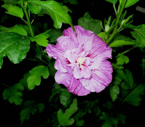 Гібіскус сирійський Арденс (фіолетовий) Гібіскус сирійський Арденс (фіолетовий) Hibiscus syriacus Ardens (purple) Габітус: вертикальний, компактний. Форма: безумовно найпопулярніший, на сьогоднішній день, сорт гибискуса для українського клімату. На відміну від звичайних сіяних гибискусов цей культурний сорт буде більш компактним і безумовно «махровим». Листопадний компактний кущ з густою рівномірної кроною і ліловими махровими квітками, що радують око протягом майже всього літа. Гілки міцні, вертикально розташовані. У дорослому віці Гібіскус Ardens досягає у висоту 1,5-2,5 м і 1-2 м в ширину. Швидкість росту: середня. Листя: розташовані по черзі, яйцевидні, 3-лопатеві, зелені, нагадують листя хризантеми. Листя розпускаються пізно, в холодній навесні молоді листя часто стають жовто-білими. Осіння забарвлення листя жовте. Цвітіння: квіти великі густомахрові, одиночні, пурпурні або червоно-фіолетові, з винно-червоним плямою в середині, діаметром 9,5 см. Час цвітіння: з середини літа і до початку осені. Плоди: коричневі коробочки, що складаються з 5 частин. Коренева система: м'ясиста, стрижнева система. Ставлення до світла/інсоляція: віддає перевагу сонячним і захищені від вітру місця, але добре переносить і легку півтінь. У тіні Гібіскус сирійський Арденс сильно витягується, погано, або зовсім не цвіте. Вологість: Гібіскус Арденс вологолюбний. Віддає перевагу помірно вологу, водопроникну грунт. У суху погоду необхідний регулярний рясний полив, щоб рослина краще цвіла. Вид грунту/грунту: На дуже бідних і сухих грунтах цвіте погано. віддає перевагу родючим помірно вологі ґрунти. На бедных песчаных почвах (полесье, в том числе большая часть киевской области) советуем подсыпать старый «перепревший» органический гумус, полученный из органических отходов из сада и кухни, компоста или навоза. Органика улучшает структуру "лёгких" почв и "запускает" природный вечный двигатель грунтовых бактерий. Черви сами от соседей к вам мигрируют и запускают цепную реакцию вечного двигателя. Если мы научимся его "обслуживать", то забудем про дорогостоящие импортные минеральные удобрения навсегда. Выбрасывая органические отходы в мусор мы лишаем свои растения лучших удобрений. Пришло время избавляться от паршивых советских привычек прожигателей жизни, и начинать сортировать отходы, заботясь о будущих поколениях. Посадка/уход: в год посадки Гибискус Ardens нужно чаще поливать (при недостатке влаги листья становятся вялыми, особенно в период цветения). Хорошо отзывается на рыхление почвы, что часто совмещают с прополкой сорняков на глубину 5-7 см. Для того, чтобы задержать влагу, необходимо производить мульчирование. Ранней весной желательно укорачивать побеги на 2/3 и удалять повреждённые ветви, это способствует обильному цветению. Вредители/болезни: в сухую жаркую погоду гибискус может поражаться тлей. За считанные дни она может превратить прелестные листочки в иссохшиеся сжатые комочки. Редко гибискусы поражает цветочная пяденица и пилильщик. Чтобы защитить кусты от этих вредителей, весной и летом проводят профилактическое опрыскивание инсектицидами (Актара, Энжио, Актеллик). Применение: Гибискус Ardens используется в одиночных и групповых посадках, для создания цветового акцента на среднем плане. Отлично смотрится в аллейных насаждениях с расстоянием посадки 2-4м. Озелене