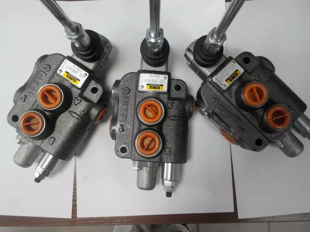 Гідророзподільник моноблоковий 1-секційний із номінальною подаванням оливи від 40 л/хв, виробництва провідних заводів гідравліки Hidros, GMS Hydraulics з ручним керуванням на 3 положення та пружинним поверненням ручки в нейтральне положення.