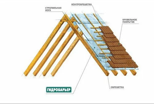 Гідробар'єр - підпокрівельна плівка, захищає конструкцію покрівлі зовні від проникнення пилу, води, атмосферних опадів. Дозволяє волозі утворилася всередині вийти назовні: перешкоджає утворенню конденсату і скупченню вологи всередині шару теплоізоляції.