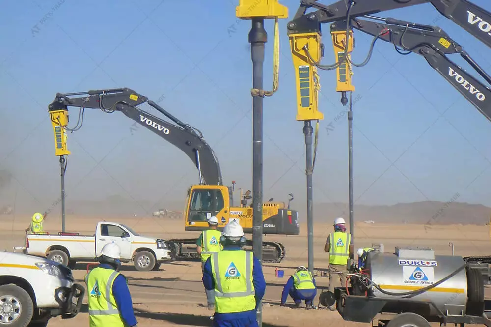Гідромолот Epiroc HB2000 на екскаватор. Діаметр інструменту — 145 мм. Вага машини-носія — 22-38 т. Гідромолоти важкого вагового класу серії HB повністю адаптовані до видобутку каменю безвибуховим способом, а також дроблення негабариту на будівельному майданчику, в кар'єрах і шахтах. Крім того, вони відмінно справляються із завданнями з розбирання масивних конструкцій з армованого бетону.