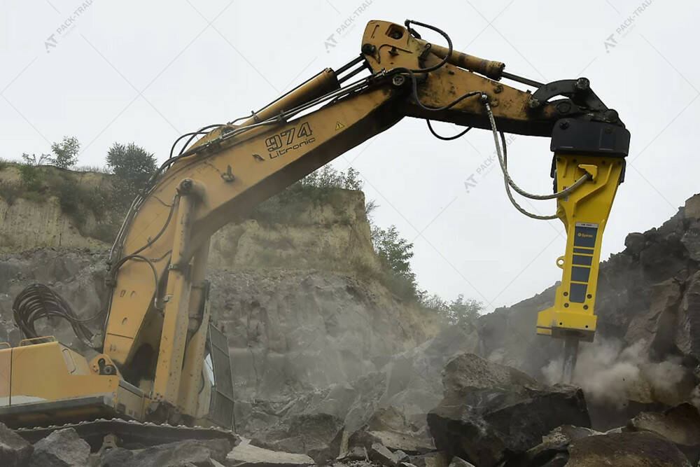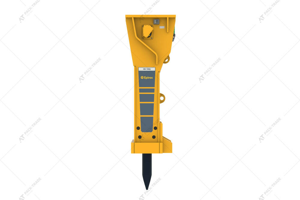 Гідромолот Epiroc HB7000 на екскаватор. Діаметр інструменту — 210 мм. Вага машини-носія — 70-120 т. Гідромолоти важкого вагового класу серії HB повністю адаптовані до видобутку каменю безвибуховим способом, а також дроблення негабариту на будівельному майданчику, в кар'єрах і шахтах. Крім того, вони відмінно справляються із завданнями з розбирання масивних конструкцій з армованого бетону.