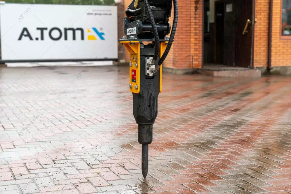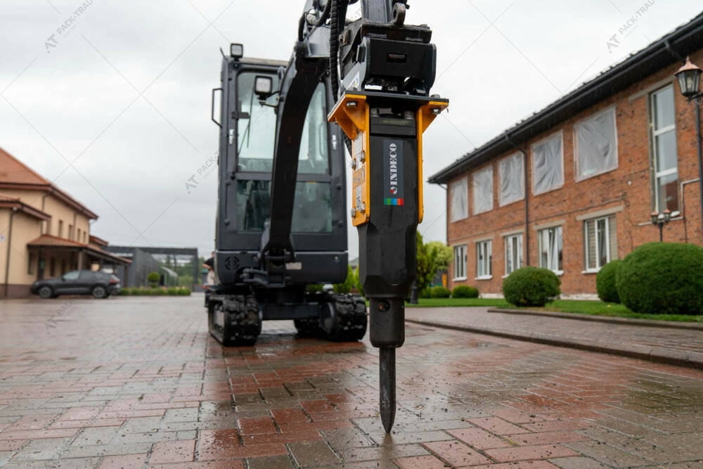 Гідромолот Indeco HP 100. Діаметр інструменту – 42 мм. Вага машини-носія - 0,5-2 т.