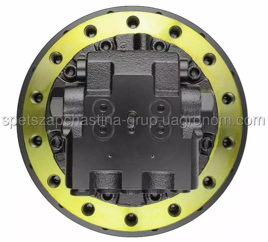 Гідромотор має 14 отворів для кріплення до рами, 14 отворів для кріплення ведучого колеса та діаметр кріплення ведучого колеса 265 мм.