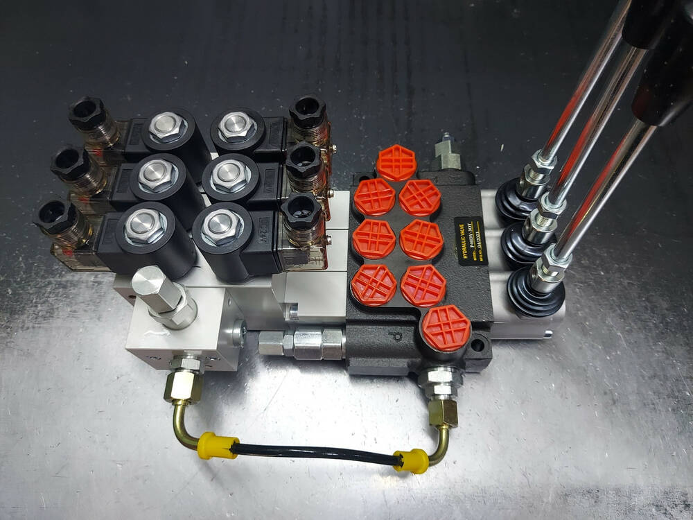 Гідророзподільник 04P40 EHOR 4 секції з гідроелектрокеруванням (ручне + електро) 40 л/хв 12/24 Корея за найкращою ціною від постачальника гідравліки No1 в Україні.