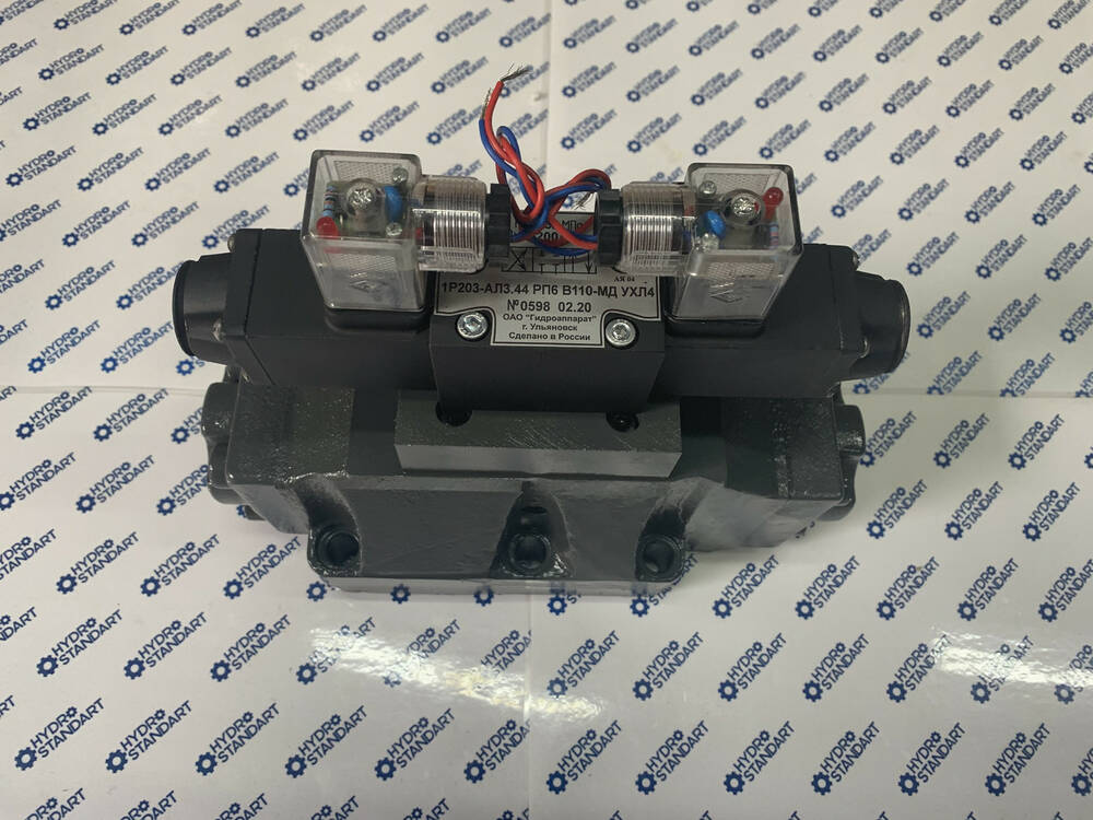 Перемикання положення золотника відбувається за допомогою керівного елемента — пілота. У трипозиційних розподільників з електрогідравлічним керуванням 1Р203 встановлюється пілот ВЕ6.34. Рвиробляють від мережі постійного або змінного струму з напругою 12 В, 24 В, 110 В, 220 В.