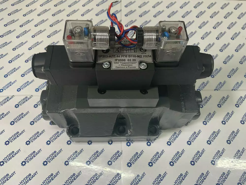Перемикання положення золотника відбувається за допомогою керівного елемента — пілота. У трипозиційних розподільників з електрогідравлічним керуванням 1Р203 встановлюється пілот ВЕ6.34. Рвиробляють від мережі постійного або змінного струму з напругою 12 В, 24 В, 110 В, 220 В.