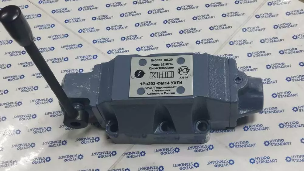 Гідророзподільник 1Рн203ФВ 44 з умовним проходом 20 мм, золотисті, чотирилінійні, з безпосереднім (ручним) керуванням із фіксацією призначені для зміни напрямку або пуску та зупинки потоку робочої рідини в гідравлічних системах промислового обладнання.