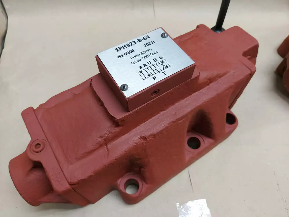 Гідророзподільники 1Рн323В14 з умовним проходом 32 мм, золотисті, чотирилінійні, з безпосереднім (ручним) керуванням і пружинним поверненням золотушнику, призначені для зміни напрямку або пуску та зупинки потоку робочої рідини в гідравлічних системах промислового обладнання.