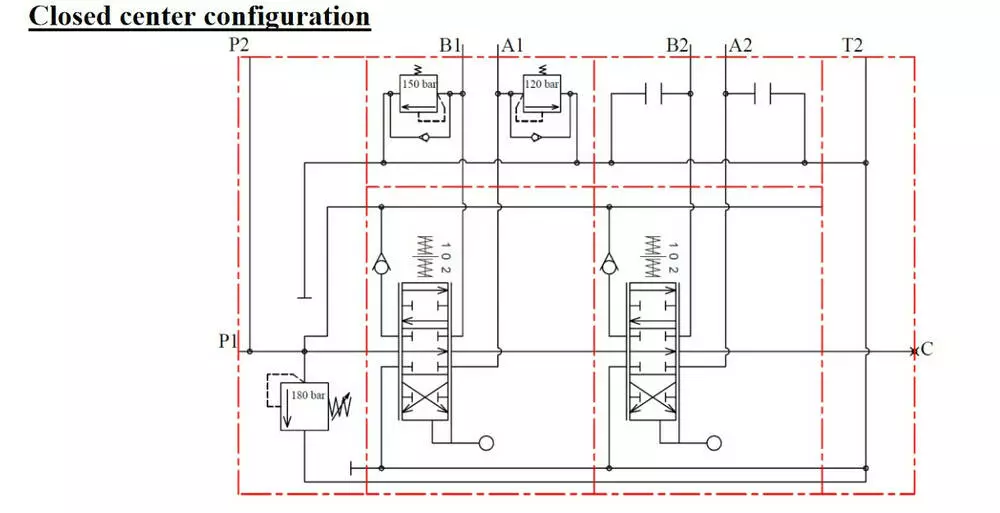 закритим центром, 34 схеми (D spool), а також для гідроциліндрів