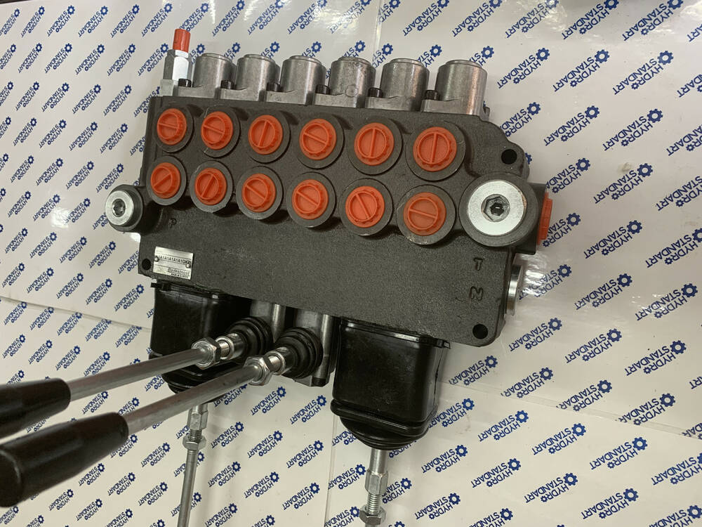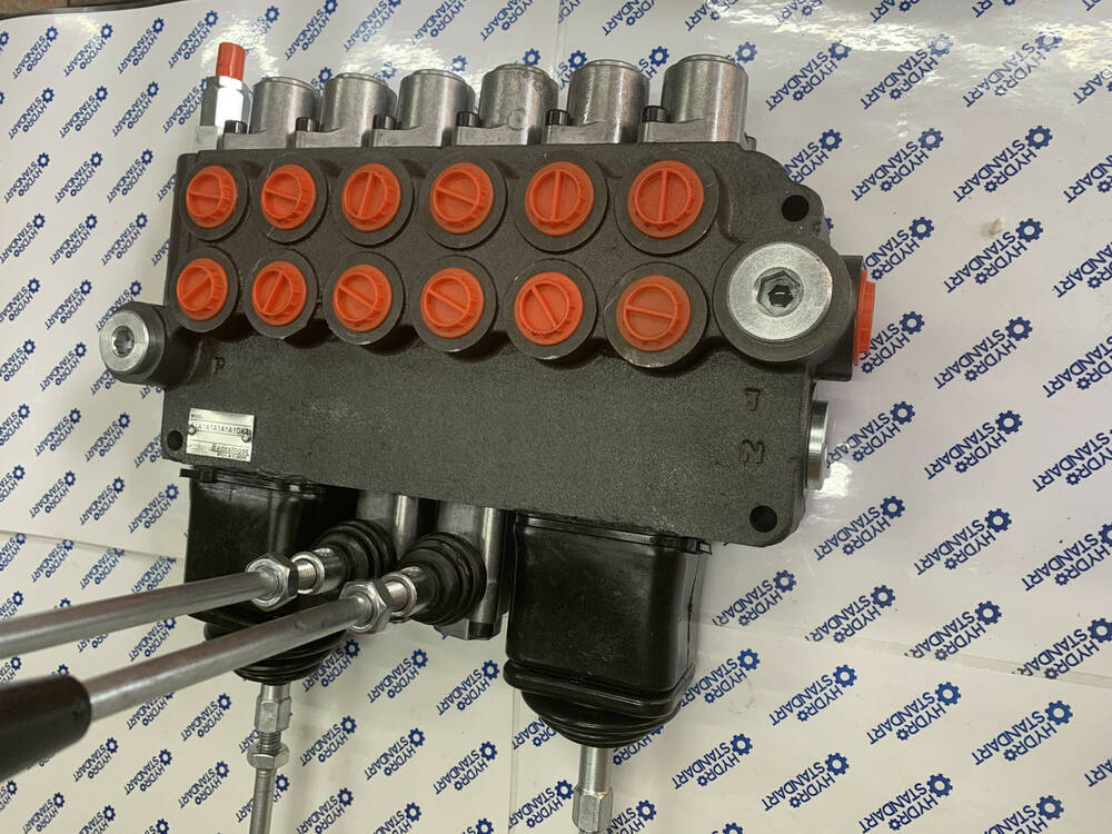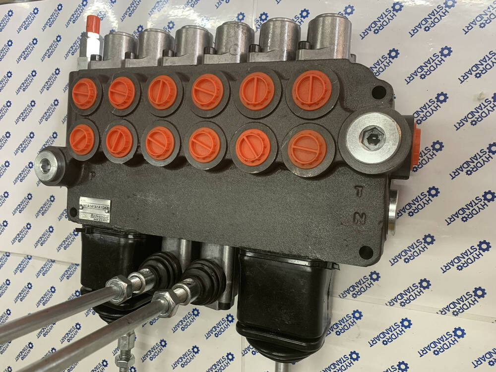 Гідророзподільник моноблочний імпортний 6-секційний з номінальною подачею масла 80 л/хв. виробництва Болгарії Badestnost з ручним керуванням і 4-х координатними джойстиками з боків ( у центрі 2 важеля). Дуже зручний варіант для установки на екскаватор Борекс , ЮМЗ 2621, а також маніпулятори.