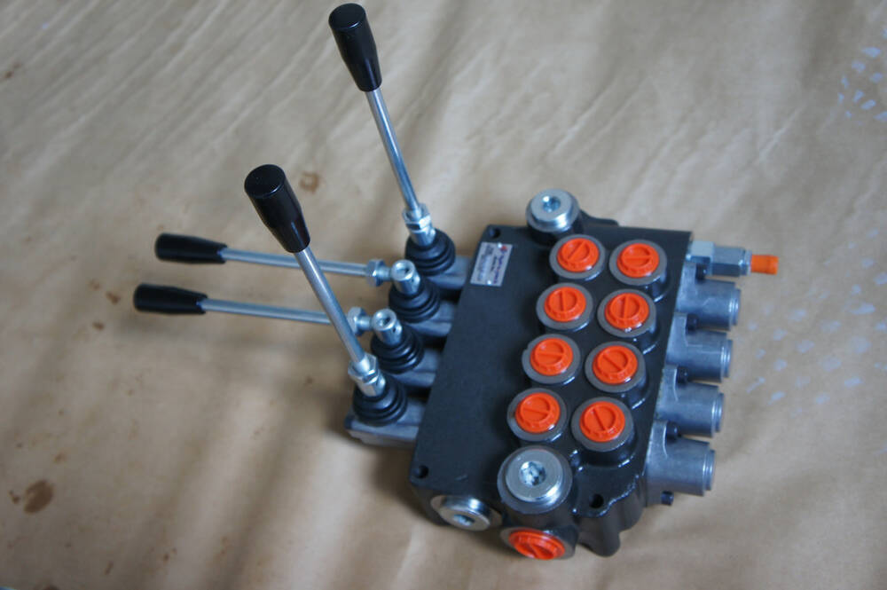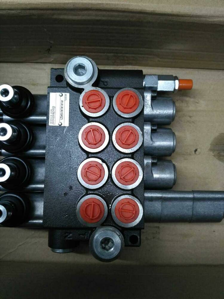 Гідророзподільник чотирисекційний 4 секції з номінальною подаванням олії 40 — 60 л/хв імпортний виробництва провідних турецьких заводів гідравліки Hidros, GMS Hydraulics з ручним керуванням і встановленим плавальним положенням на одній з секції.