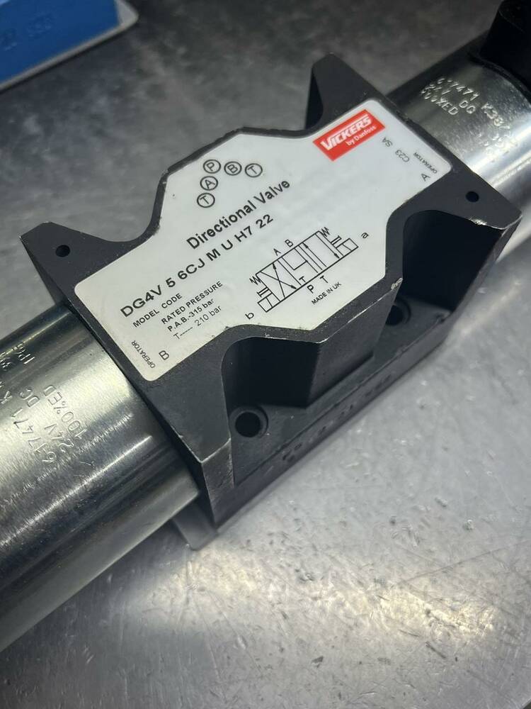 Гідравлічні розподілники Eaton Vickers DG4V 5 6CJ M U H6 20 (ВЕ10.34 4WE10J) призначені для керування й зміни напрямку або пуску та зупинки потоками робочих рідин у гідравлічних системах. Перемикання положення золотника відбувається за допомогою керівного елемента — електромагнітна (привода електромагнітного).