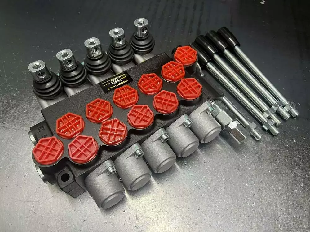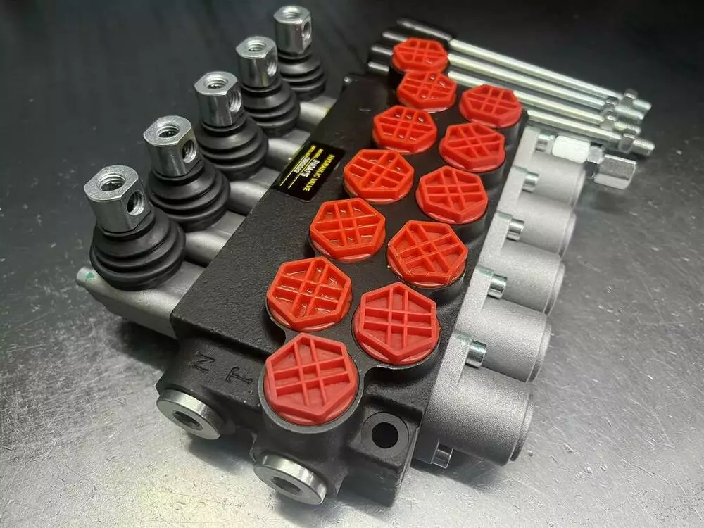 Гідророзподільники Р40 моноблокові з ручним керуванням є найпопулярнішими золотистими гідравлічними розподільниками на українському ринку. Цей гідророзподільник Р40 на 5 секційq, корейського виробництва з підпружиненими золотниками тип А1, підйом і опускання без фіксації, так само можна додатково встановити плавальне положення, фіксацію, троса, джойстики.