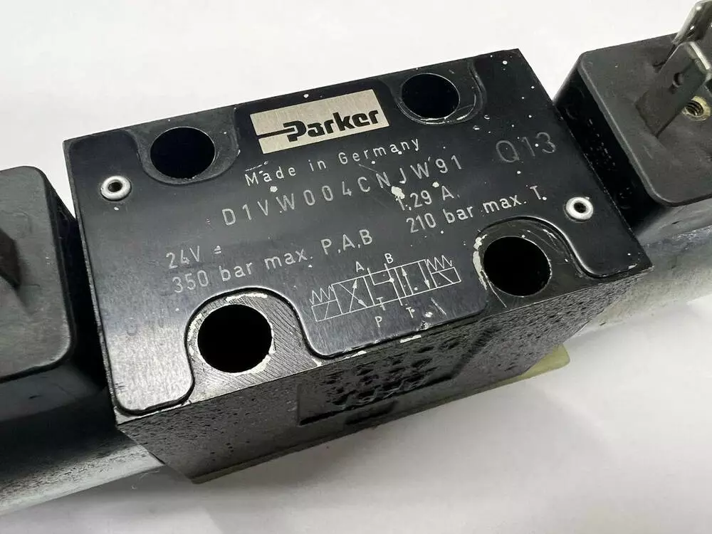 Гідравлічні розподілники імпортні типу Parker d1w004cnjw91 (4WE6-J, ВЕ6.34) призначені для керування й зміни напрямку або пуску та зупинки потоками робочих рідин у гідравлічних системах. Перемикання положення золотника відбувається за допомогою керівного елемента — електромагнітного (привода електромагнітного).