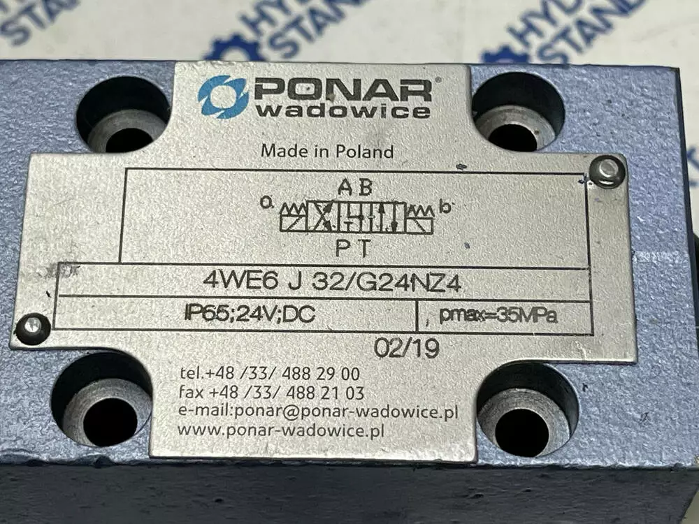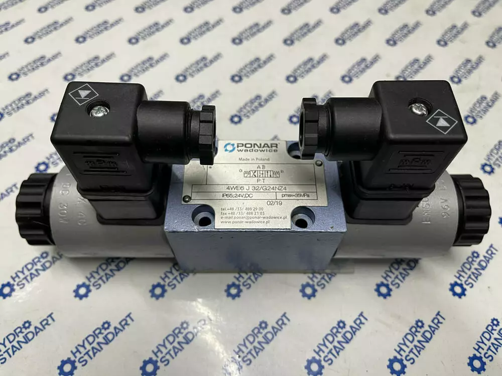 Гідророзподільник Ponar 4WE6 J 32/G24NZ4 схема D (аналог ВЕ6.34) преміум Класу, виробництва Ponar Wadowice, з двостороннім електромагнітним керуванням, схема "J" аналог ВЕ6.34