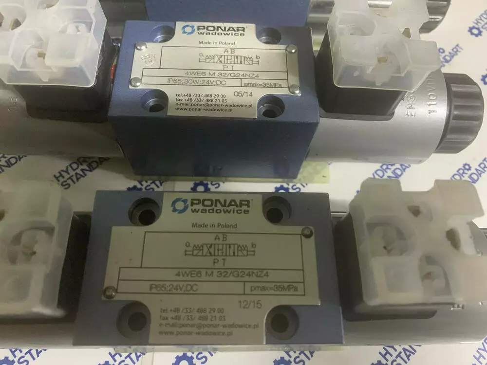 Гідравлічні розподілники Ponar Wadowice 4WE6 ( ВЕ6.24 ) є 3-позиційним із двостороннім керуванням, з умовним проходом 6 мм, нормально-закритими з пружинним поверненням золотистика.