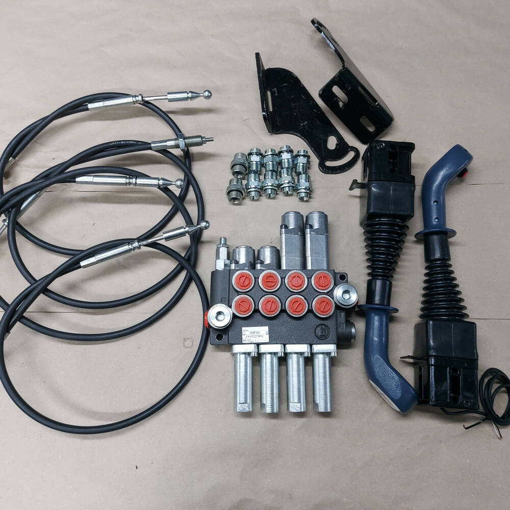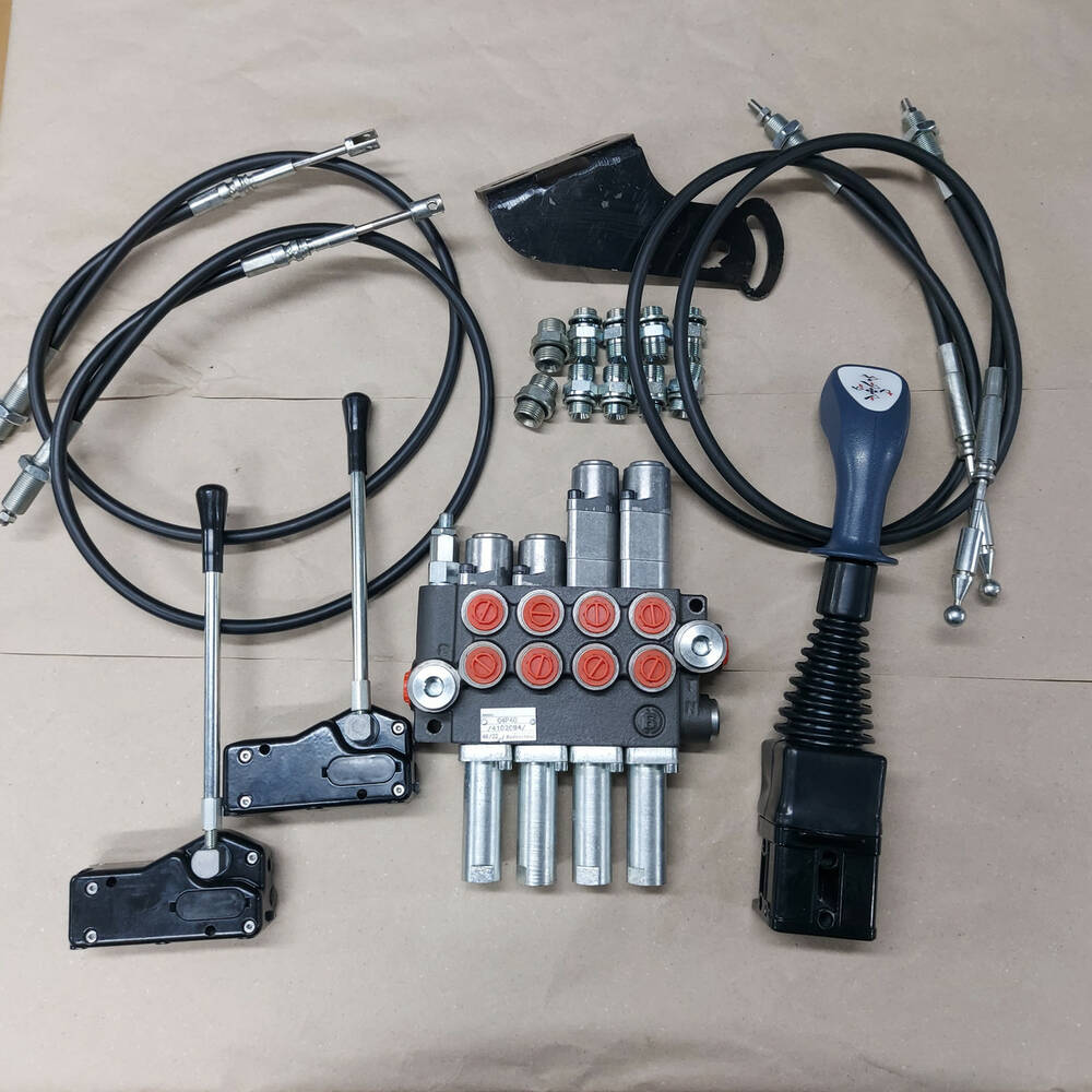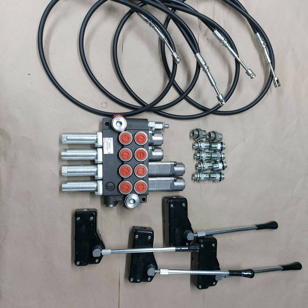 Комплект з гідророзподільника ( оригінал Badestnost, Болгарія) модель 4Р40 на 4секції та 2 плавальні золотниками тип К16/К15 на вибір (підіймання й опускання без фіксації, фіксація тільки в режимі плавального -К16, К15 - все положення з фіксаціями) + джойстик без кнопок (можна замовити з кнопками, +250 грн кнопка) + тросова ручка 3047, 4 тросики з китами завдовжки 1,5 м (на вибір ходові розміри: від 0,6 м, 1 м, 1,2 м, 1,5 м і 2 м, під замовлення можна замовити й іншу довжину троса). Можна замовити комплект на линвових ручках 3047 можна скрутити разом (дивіться на фото).