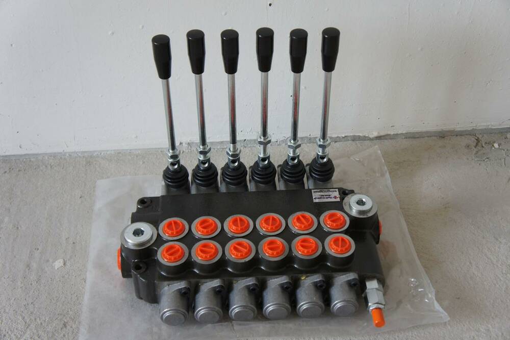 Високоякісний імпортний гідророзподільник аналог Р40 моноблочний 6-ти секційний 6Р40 з номінальною подачею масла від 40-60 л/хв, виробництва провідних заводів гідравліки Болгарії, Італії, Польщі, Туреччині з ручним управлінням на 3 положення та пружинним поверненням ручки в нейтральне положення. Дані гідророзподільники працюють від насосів НШ10, НШ16, НШ32 і ін аналоги з подачею масла до 60 л/хв.