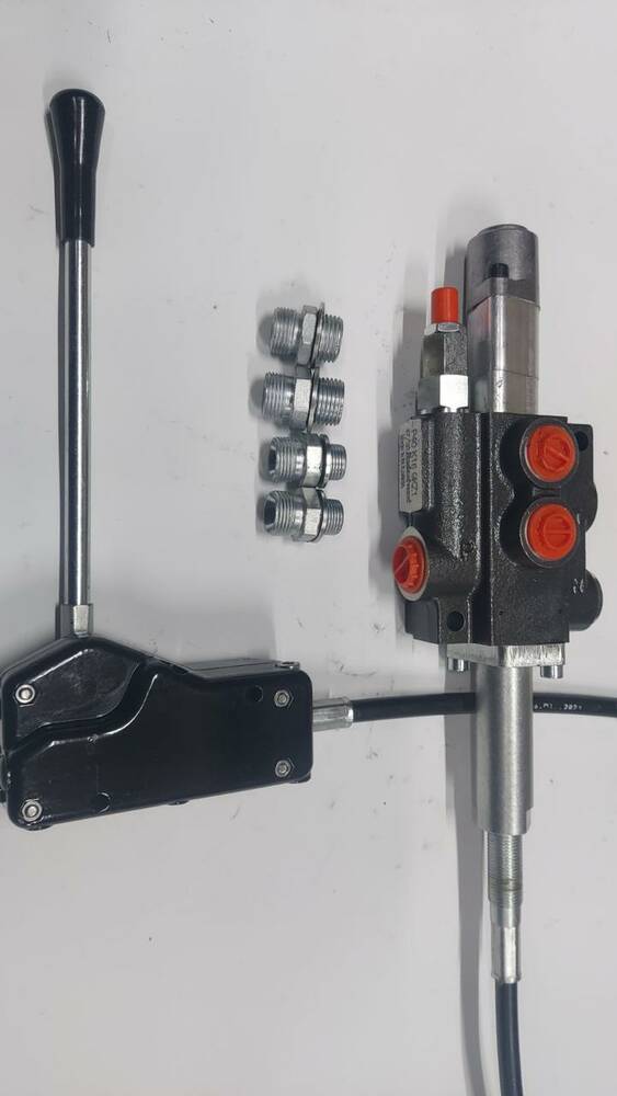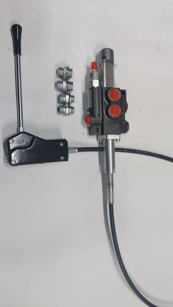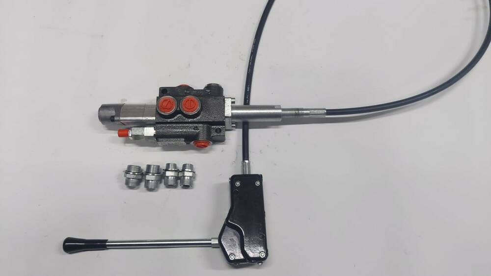 Гідророзподільник оригінал Болгарський Р40 з плавальним положенням на вибір: К16 (4 положення золотушнику: підйом і опускання підпружинений без фіксації, що плаває положення фіксується) або з плавальним положенням К15 (усі положення фіксуються) на тросе завдовжки 1,5 м (на вибір ходові розміри: 0,6 м, 1 м, 1,2 м, 2 м, або 3 м, а також під замовлення можна замовити й іншу довжину троса) і тросовою ручкою 3047. Гідророзподільник виробництва Badestnost, Болгарія, оригінал. Цей комплект широко застосовується на мінітракторах, а також для підіймання причепа/кузова самоскида таких машин, як ЗІЛ, Газель, Маз, Камаз (часто для підняття кузова застосовується комбінація Р40-С1 або Р80-С1 із золотником односторонньої дії + тросова ручка з тросом).