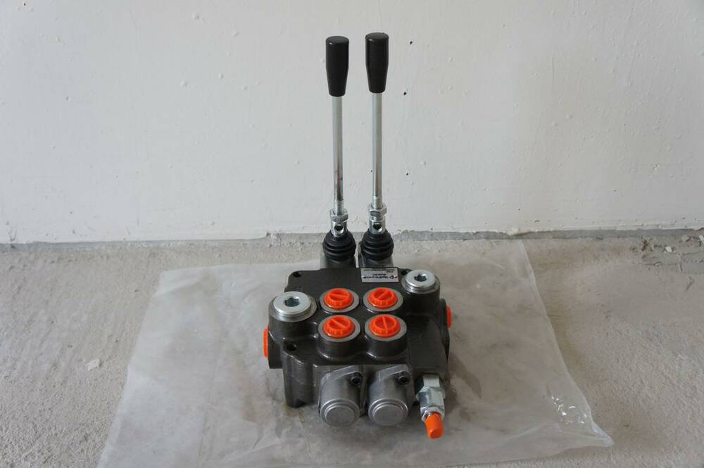 Імпортний 2-секційний гідророзподільник спецсерій на Львівський навантажувач, а типу Р80 з номінальною подачею масла 80 л/хв. виробництва провідних заводів гідравліки з ручним управлінням на 3 положення та пружинним поверненням ручки в нейтральне положення.