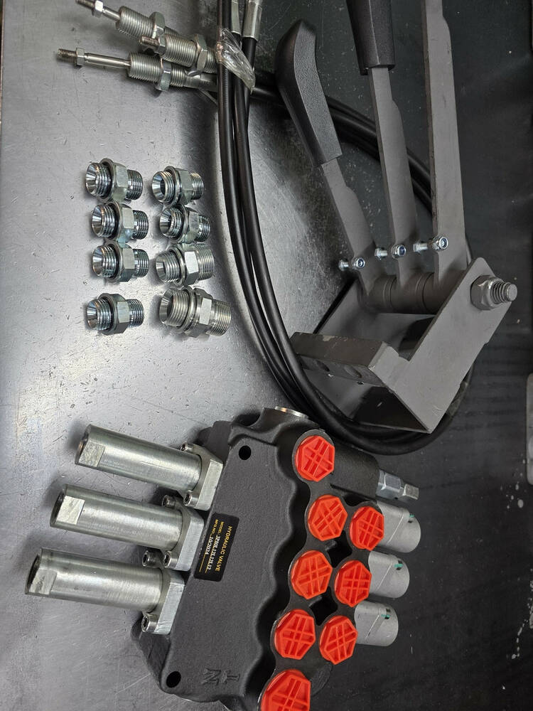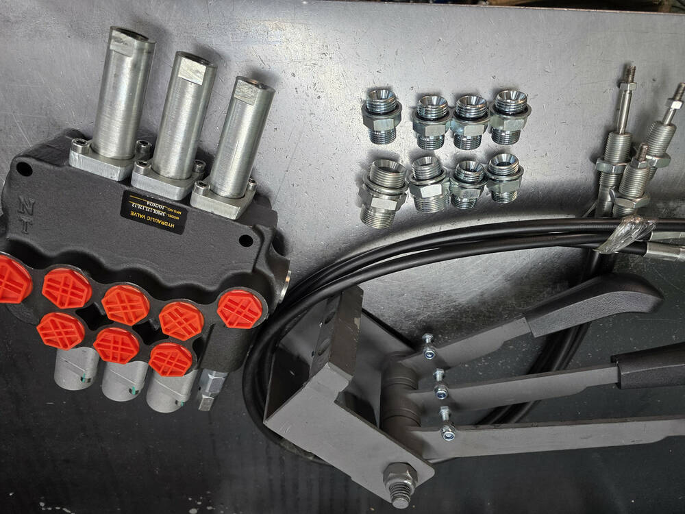 На щелепні навантажувачі додатково ставиться електричний дивертер потоку 12 або 24 В на одну зі секцій гідророзподільника, а також джойстик із кнопкою, за допомогою якої перемикається цей електричний дивертер і перенаправляє потім з одного на інший гідроциліндр. Отже, ви керуєте трьома секціями за допомогою одного джойстика з кнопкою.