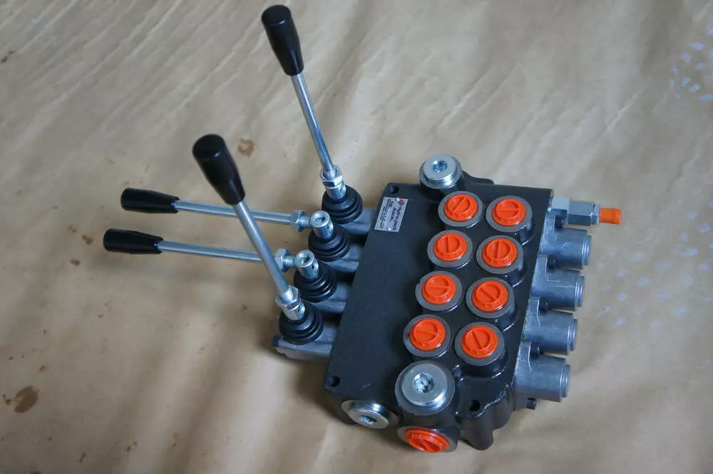 Гідророзподільник імпортний моноблочний типу Р80 4х секційний 4Р80 з номінальною подачею масла 80 л/хв. виробництва провідних заводів гідравліки з ручним управлінням на 3 положення та пружинним поверненням ручки в нейтральне положення.