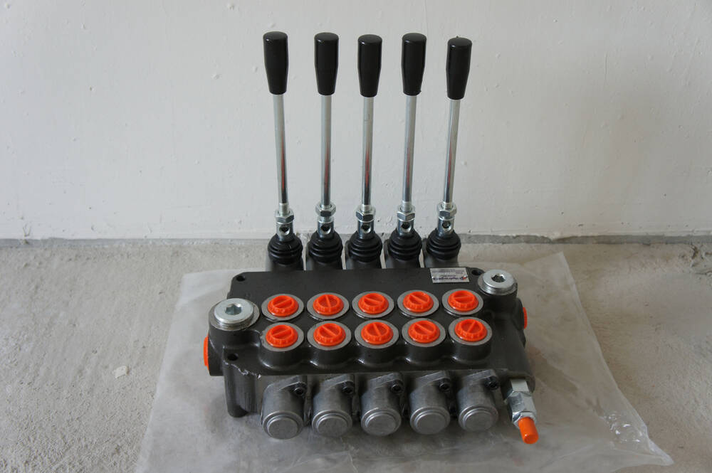 Гідророзподільник імпортний моноблочний аналог Р80 3/2 222 5ти секційний 5Р80 з номінальною подачею масла 80 л/хв. виробництва провідних заводів гідравліки з ручним управлінням на 3 положення та пружинним поверненням ручки в нейтральне положення.