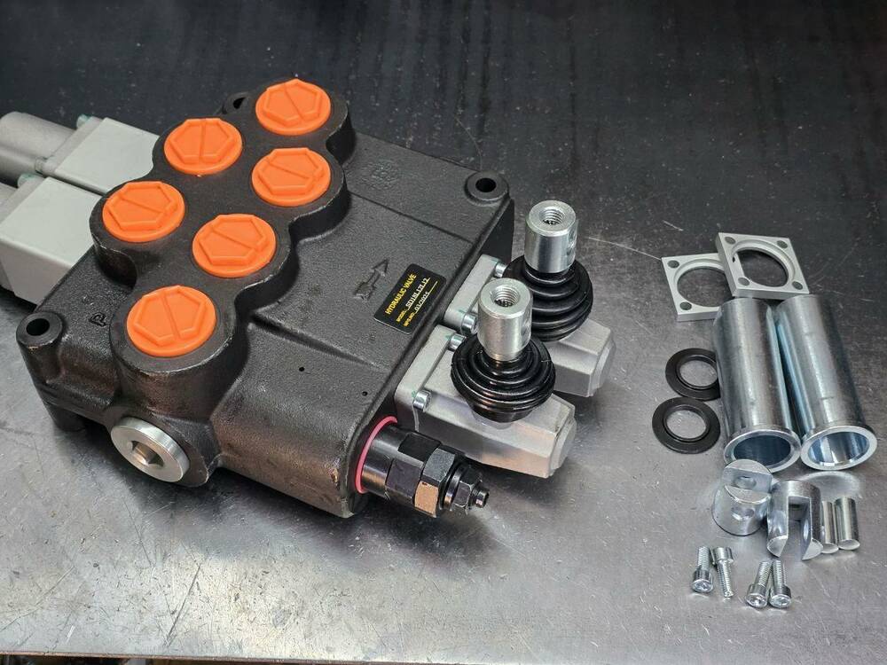 На цей гідророзподільник у нас є комплект для під'єднання тросів, кити, джойстик